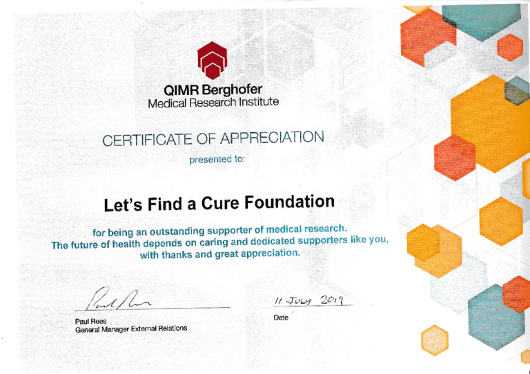 We donate 100% of the money raised to the QIMR Burghofer Medical Research Institute who is actively researching a cure for cancer.