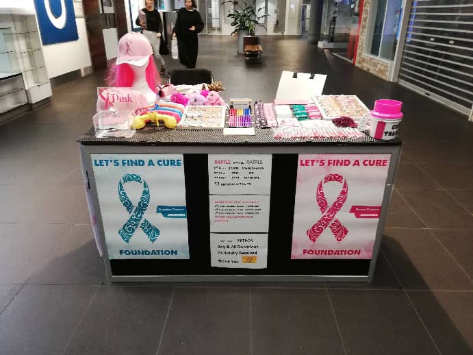 We go to shopping centres who allow us to set up a table to sell our raffle tickets and products to raise money for charity. We love the shopping centres who support us as they give us their community sites.